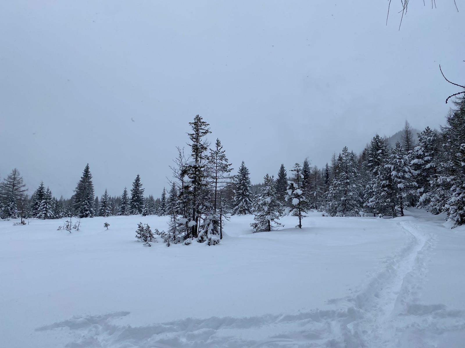 Unglaublich guter, pulvriger Schnee.Die K2 Skitour durch den Wald geht nur im Aufstieg, wie mir ein anderer Tourengeher berichtete. Die Abfahrt sollte auf jeden Fall über die Piste erfolgen, Wenn man seinen Ski liebt
