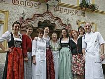 Wenn man auf der Suche nach dem Echten und Ursprünglichen fündig geworden ist, dann ist das eine besondere Freude. Erst recht, wenn es von der jungen Generation gepflegt, weiterentwickelt und im Falles der Speisen sogar verfeinert wird. Es sind noch heute 3 Generationen in der Alpenrose präsent: Die 99jährige Seniorchefin (Maria Wörndl), Chefin Maria Lerche, ihr Sohn Florian und ihre Tochter Julia. Letztere kümmert sich um den Service und ist für die Auswahl der erlesenen Weine verantwortlich. Der 39jährige Florian steht am Herd und hat seine Kochkunst nicht nur bei der Oma Maria abgeschaut, er hat sein Können in der Steiermark, in Wien und am Arlberg erlernt. So sind die steirischen Einflüsse des experimentierfreudigen, jungen Küchenchefs unübersehbar.