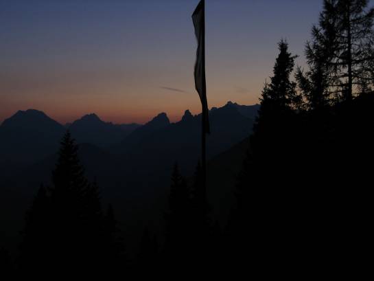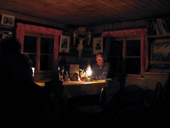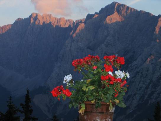 So kann man mit etwas Glück interessante Persönlichkeiten treffen auf der Pleisenhütte. Allen voran natürlich den Pleisen-Sigi, der vom Vater die Hütte übernommen hat und der dem Senior zum 80. Geburtstag eine Antoniuskapelle neben der Hütte errichtet hat. Der Sigi ist ein wirklich würdiger Nachfolger und erhält das Blockhaus im besten Sinne einer echten Bergsteigerunterkunft. Auch wenn die Hütte mehrfach erweitert wurde; hier stimmt die Atmosphäre einfach immer noch. Leicht kommt man hier also mit anderen ins Gespräch, etwa auf der Sonnenterrasse, wenn der Hohe Gleirsch zu leuchten beginnt, oder nachher in der urigen Stube der Blockhütte, wenn die Petroleumlampen angezündet werden und man sich bei einem Glaserl richtig verratscht. Dann werden Geschichten aus dem Karwendel erzählt, vom besten Lawinenhund aller Zeiten etwa. Oder es wird sogar manchmal Musik gemacht, wenn die richtigen Leut’ beieinander sitzen und die Stimmung eben danach ist.