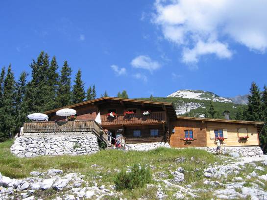 Will man auf die Pleisenspitze, dann kommt man an der Hütte nicht vorbei. Nicht, weil man mit entsprechender Kondition den Berg als Tagesunternehmung nicht packen könnte. Nein, weil deren Ausstrahlung einfach keinen kalt lässt. Und, weil der Sommerweg auf den Gipfel nicht nur an der Hütte vorbeiführt, sondern sogar direkt über die Hüttenterrasse geht. Und wer kann dann schon nein sagen zu einem Erfrischungsgetränk mit traumhaftem Karwendelblick? Dennoch sei hier erwähnt, dass auch der Gipfelbesuch absolut lohnt. 2 Stunden braucht man von der Hütte noch auf den 2569 Meter hohen Spitz. Gewaltig ist von dort oben der Rundblick; bis in die befirnten Zentralalpen reicht die Schau inmitten dieser Karwendel-Ewigkeit.