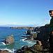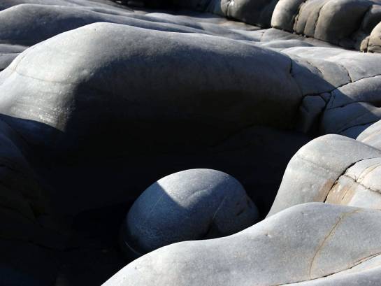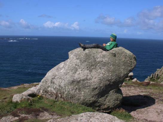 Der quasi endlose Küsten-Trip ist mit 1014 Kilometern der längste offizielle Fernwanderweg in Großbritannien und führt von Minehead in Somerset entlang der Küsten von Devon und Cornwall bis nach South Haven Point in Dorset. Als ursprünglicher Weg der Küstenwache verläuft der South West Coast Path meist direkt an der Küste entlang, weswegen durch die stete Abfolge von Buchten und Steilküsten viele, viele Höhenmeter zusammenkommen. In der Summe sollen sie angeblich einer vierfachen Everest-Besteigung gleichkommen. So hoch wollen wir freilich nicht hinauf. Vielmehr am Lands End Hotel mit seinen Reisebus-Ausflüglern möglichst schnell weiter. Wenige hundert Meter später können wir fast wieder alleine den grandiosen Küstenpfad genießen. Wanderkarte oder Führer haben wir übrigens nicht mit dabei. Wozu auch? Liegt das Meer auf der rechten Seite ist klar, dass wir genau richtig sind, um den entlegenen Nanjizal Beach zu erreichen. Dort verbindet die schmale, hohe Grotte „Song of the sea cave“ eine türkisfarbene, kleine Lagune mit der weißen Gischt der Atlantik-Wellen. Tatsächlich schwimmen zwei hartgesottenen Engländer dort hindurch. Wir alpinen Landratten bevorzugen hingegen schöne Granit-Klettereinlagen, um an die vorderste Felsspitze zu gelangen.