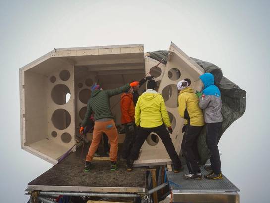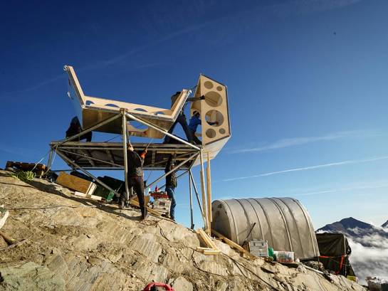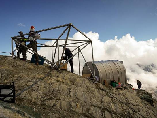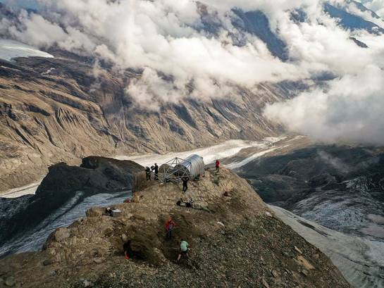 Noch vor dem Winter konnte das neue Glockner-Biwak fertiggestellt werden. Die Alu-Haut des alten Biwaks war marode und zu klein, innen gab es Schimmel - das alte Glockner Biwak war baufällig! Unter der Leitung des Österreichischen Alpenvereins und mit den Spenden der Aktion SALEWA3000 wurde nun in 3205 m ein neues Biwak errichtet. Es hat eine Oktagon-Form und hat so den Vorteil, dass es vom Wind stehts freigeweht, also nicht eingeschneit wird. die Schachtel bietet im Normalfall 15 und im Notfall bis zu 25 Menschen Platz. Kosten 85.000 Euro.