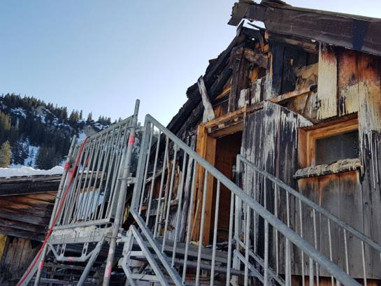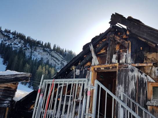 Erschwerte Löscharbeiten. Da die Hütte mit normalen Fahrzeugen im Winter nicht erreichbar ist, konnte die Feuerwehr nur bis zur Unteren Maxlraineralm fahren. Dann musste auf Pistenraupe umgestiegen werden und Löschmaterial sowie Feuerwehrleute über die Piste zur Hütte gebracht werden.